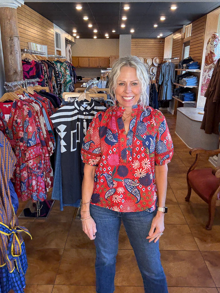 Joy Joy Firework Lace Trim Top